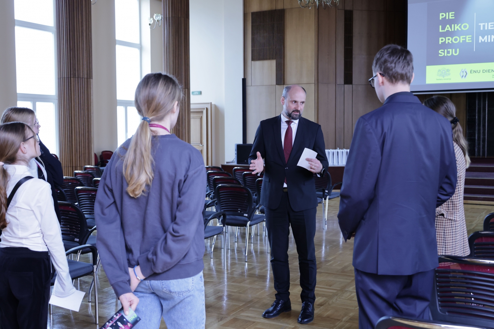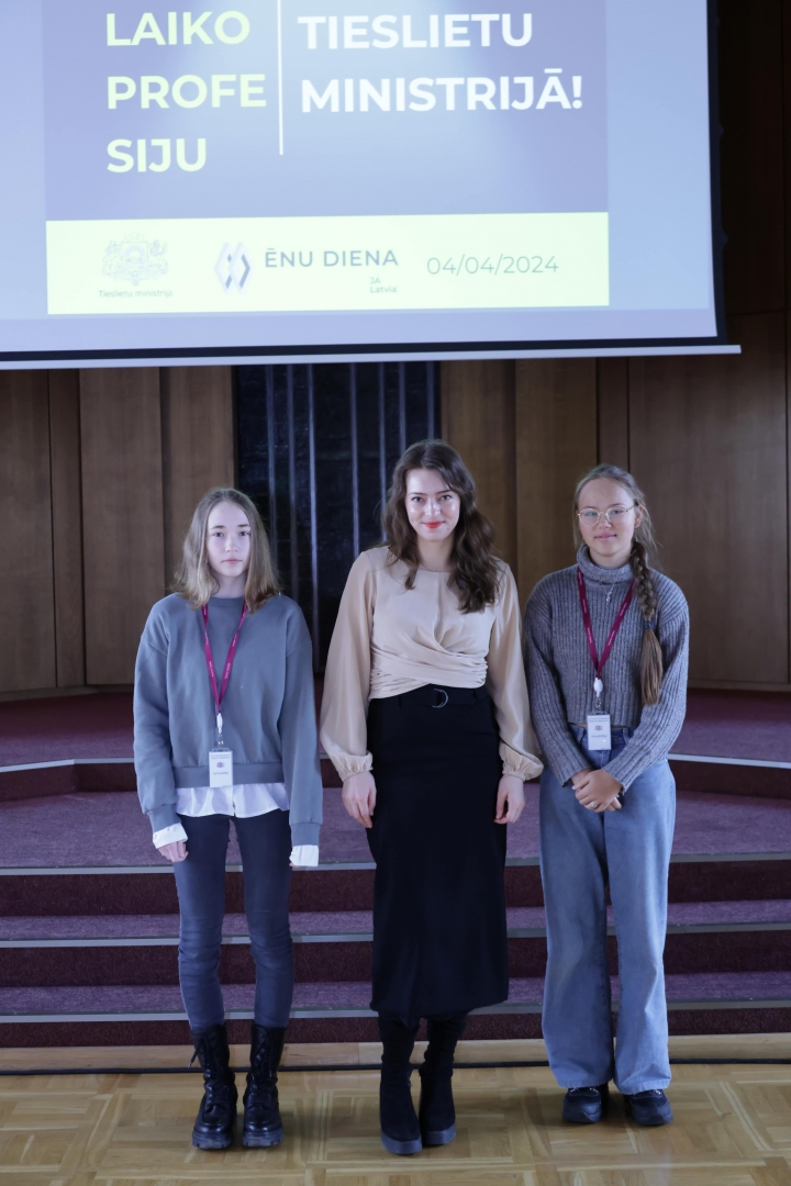 Ceturtdien, 4. aprīlī, “Ēnu dienā 2024” Tieslietu ministrijas pārstāvju gaitām sekoja vairāk nekā 60 skolēni no visas Latvijas. Skolēni iepazina tieslietu ministres Ineses Lībiņas-Egneres, Tieslietu ministrijas parlamentārās sekretāres Laumas Paegļkalnas, valsts sekretāra Mihaila Papsujeviča, tieslietu ministres biroja,  Starptautiskās sadarbības departamenta, Tiesu sistēmas uzraudzības departamenta, Eiropas Savienības Tiesas departamenta, Tiesu sistēmas politikas departamenta un Juridiskā departamenta pārstāvju amata pienākumus un viņu profesijas.