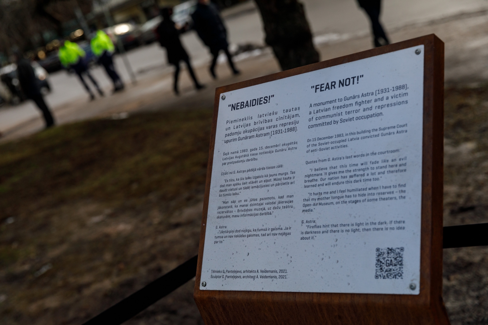 2022. gada 20. janvārī, Tieslietu ministrija sadarbībā ar Latvijas Okupācijas muzeju atklāja Gunāra Astras piemiņai veltītu pieminekli “Nebaidies!” Baumaņa skvērā (Brīvības ielā 34, Rīgā) pretim tiesas ēkai, kurā Latvijas slavenāko brīvības cīnītāju 1983. gadā notiesāja LPSR Augstākā tiesa.