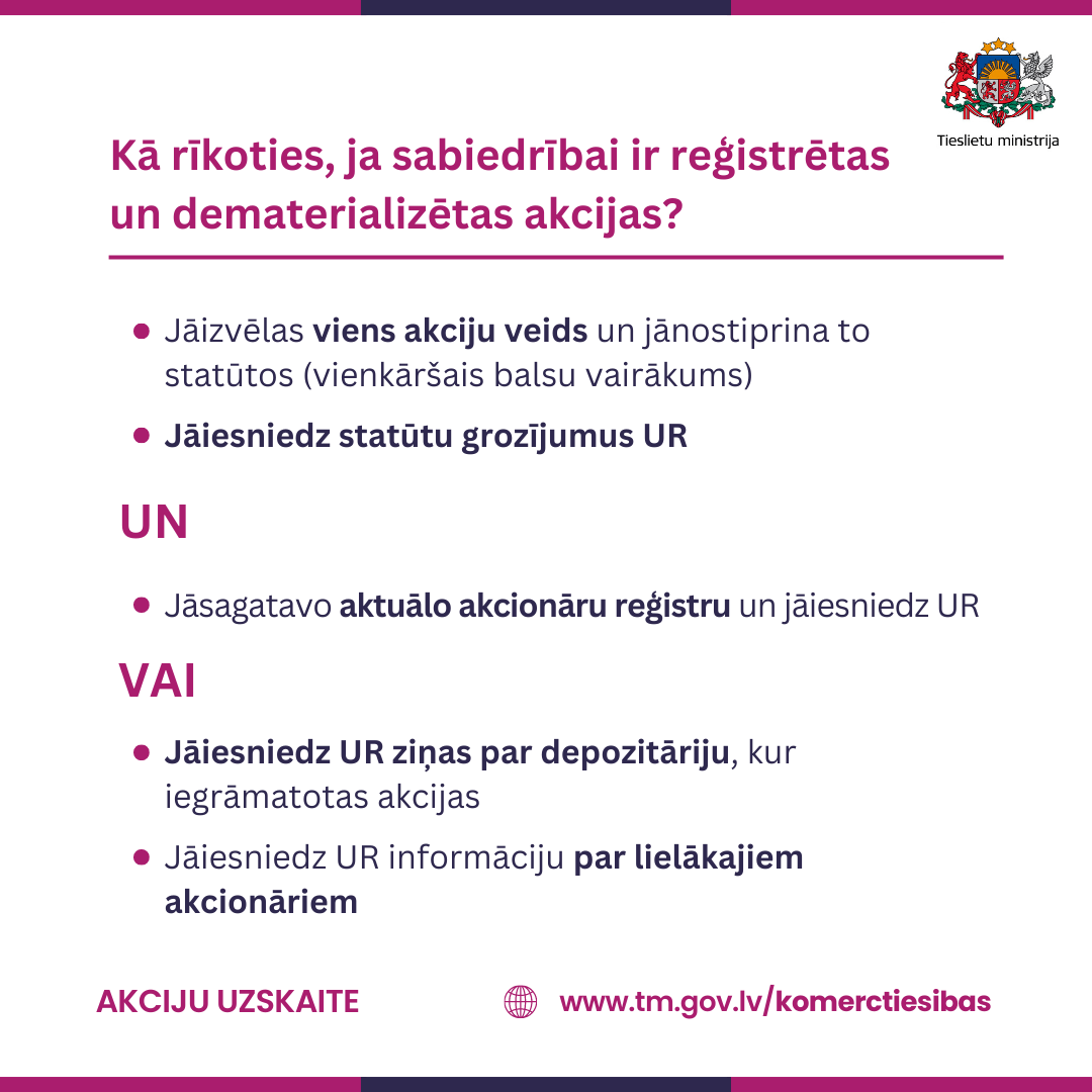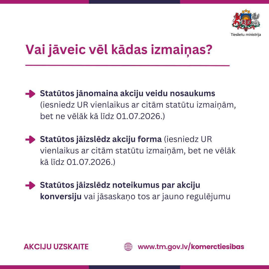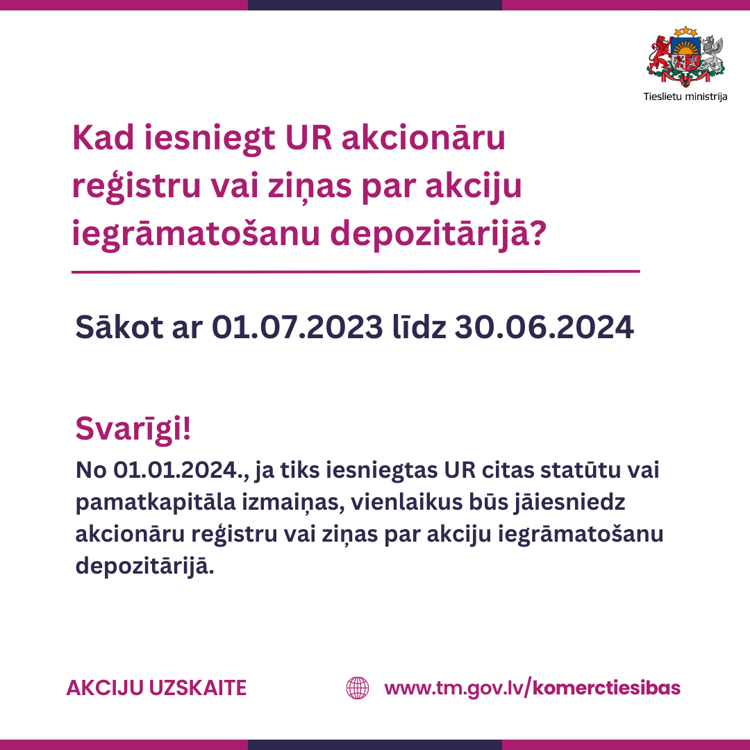 2023. gada 1. jūlijā stājās spēkā izmaiņas likumos, kas paredz modernizēt un padarīt caurskatāmāku akciju sabiedrību darbību, radot pieeju informācijai par akciju sabiedrību īpašniekiem, kā arī mazinot noziedzīgi iegūtu līdzekļu legalizācijas un terorisma un proliferācijas finansēšanas riskus.