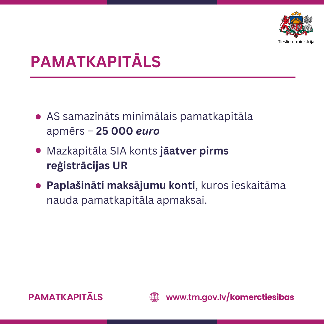 • Pārrobežu reorganizācija 2023. gada 1. jūnijā stājas spēkā grozījumi Komerclikumā, kas ievieš divus jaunus pārrobežu reorganizācijas veidus. Skaidrojumi par pārrobežu reorganizāciju pieejami šajā sadaļā.
