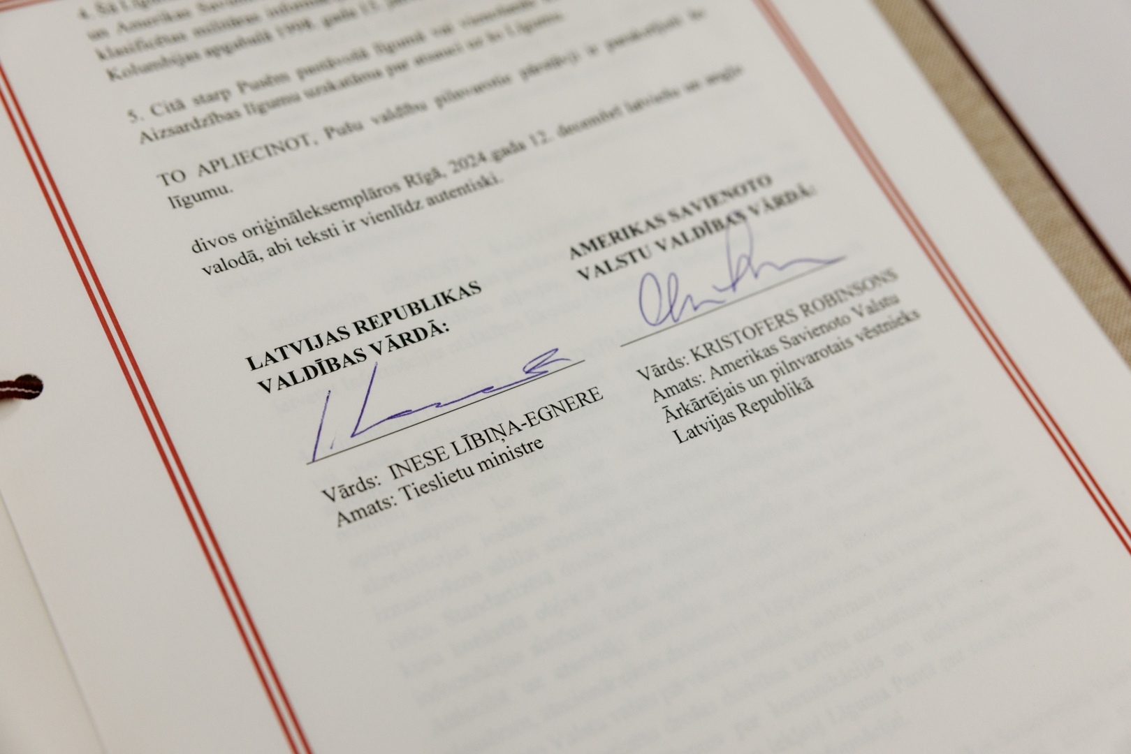 2024.gada 12.decembrī tieslietu ministre Inese Lībiņa-Egnere un Ārkārtējais un pilnvarotais Amerikas Savienoto Valstu vēstnieks Latvijā Kristofers Robinsons parakstīja Latvijas un ASV līgumu par drošības pasākumiem klasificētas informācijas aizsardzībai.