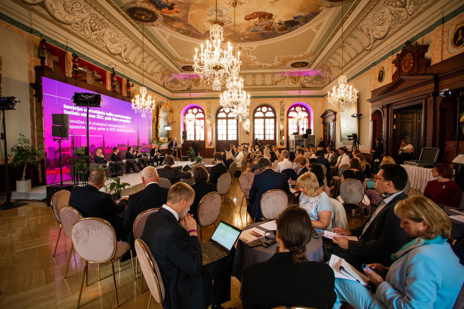 Forumu atklāja sesija “Inovācijas un stratēģiskā vadība sasniedzamajam tieslietu sektoram 2022.gadā: līderu perspektīva”, kurā dalībnieki diskutēja par jautājumiem: Kādi ir tieslietu nozares izaicinājumi? Kas veido līderību nacionālā un starptautiskā mērogā? Kas virza tieslietu jomas attīstību? Vai ierastie lēmumu pieņemšanas ceļi darbojas ārkārtējās situācijās? Vai un cik lielas atkāpes pieļauj tiesiskums? Kas veido jauno līderu paaudzi?
