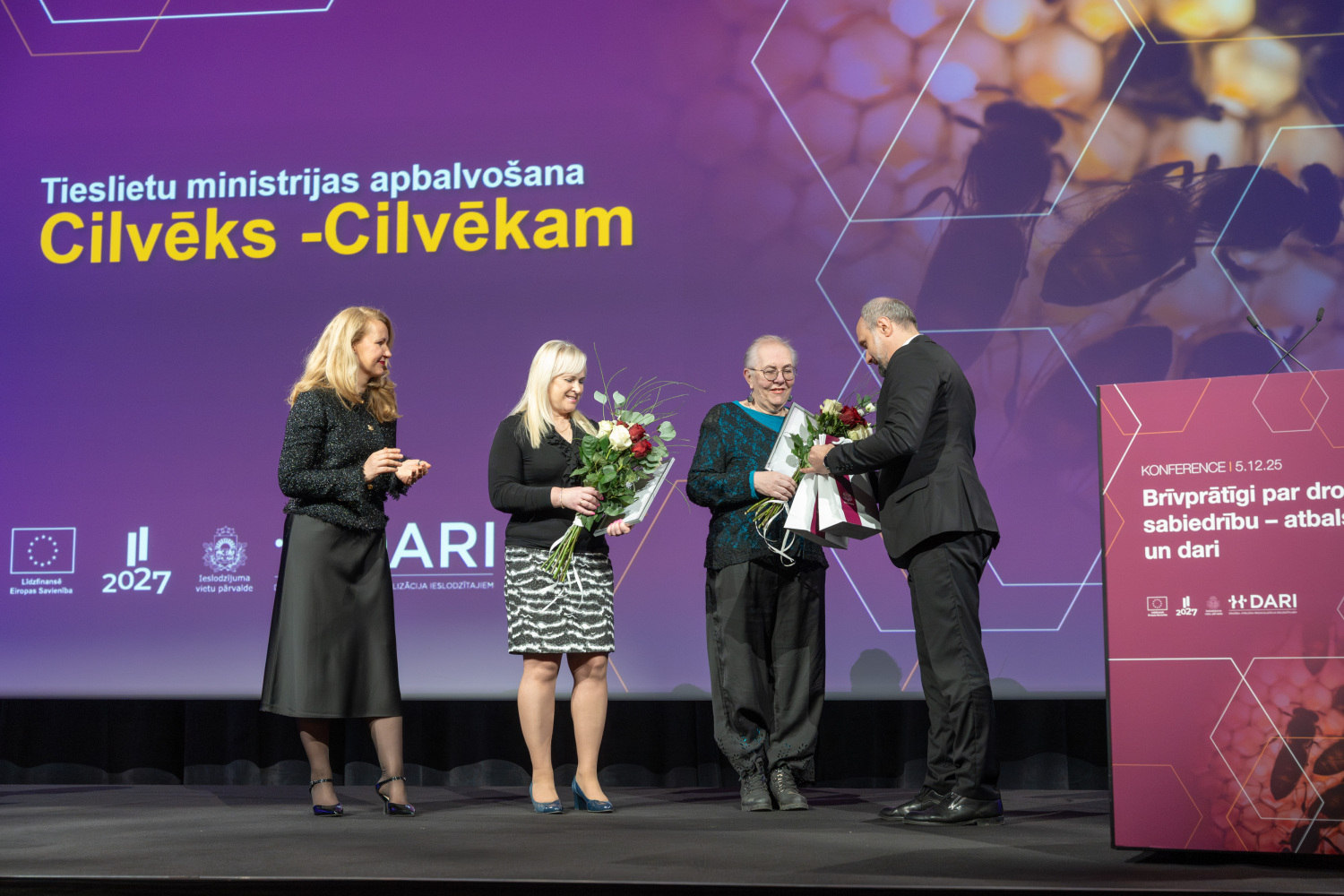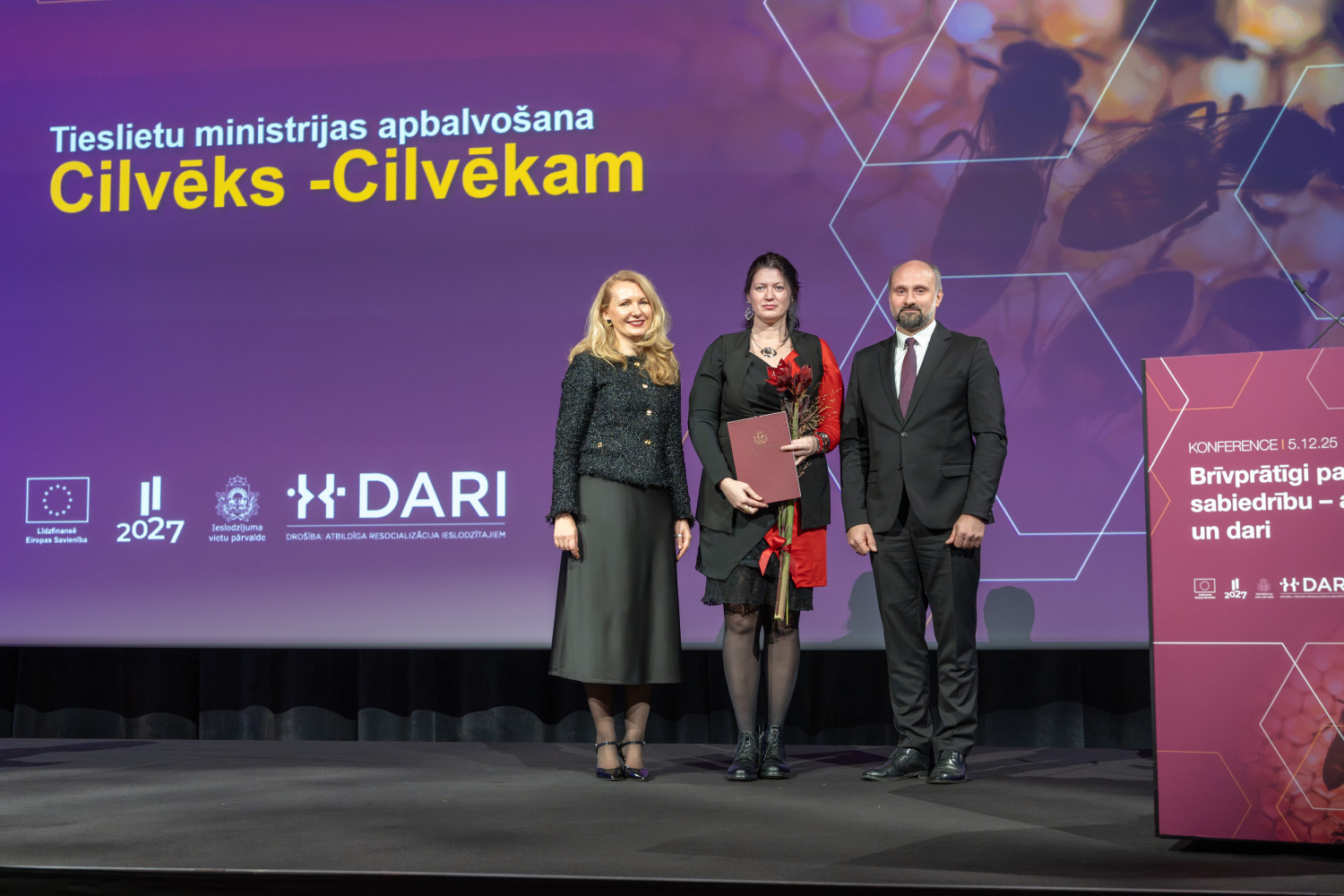 Piektdien, 5. decembrī, Starptautiskajā brīvprātīgo dienā, tieslietu ministre Inese Lībiņa-Egnere pasniedza Tieslietu ministrijas apbalvojumus “Cilvēks – cilvēkam” brīvprātīgajiem, kuri aktīvi iesaistās darbā ieslodzījumu vietās un Valsts probācijas dienestā, sniedzot nozīmīgu ieguldījumu sabiedrības drošības un cilvēcības stiprināšanā.