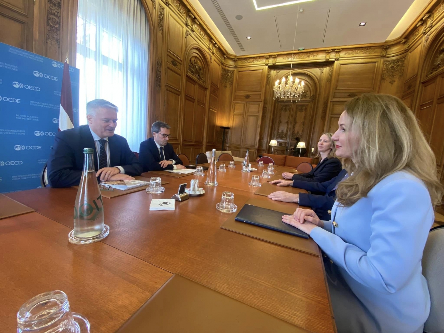 Tieslietu ministre Inese Lībiņa-Egnere no 2024. gada 18. līdz 19. martam darba vizītē Parīzē tikās ar Francijas tieslietu ministru Ēriku Diponu–Moreti, Francijas Valsts padomes viceprezidentu Didjē Rolānu Tabito un Ekonomiskās sadarbības un attīstības organizācijas (OECD) ģenerālsekretāru Matiasu Kormanu.