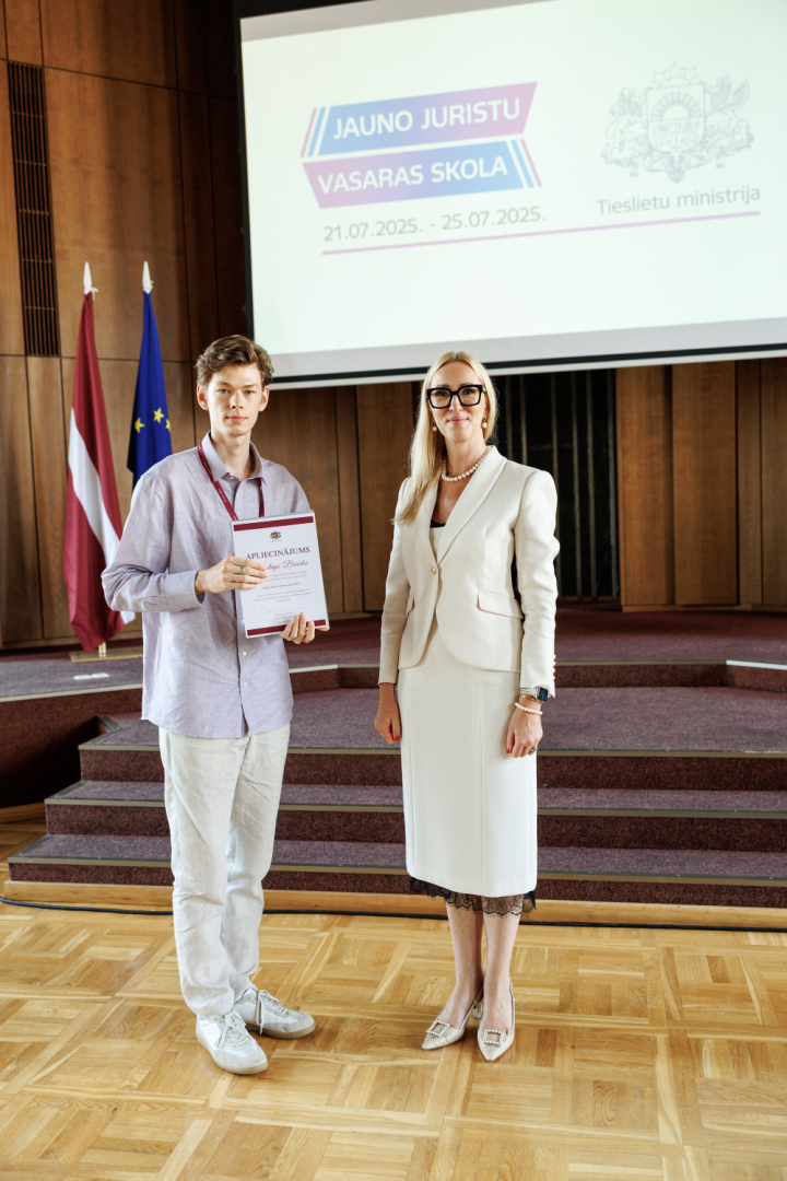 2025.gada 25.jūlijā Tieslietu ministrijā noslēgusies pirmā Jauno juristu vasaras skola, kurā nedēļas garumā 30 tiesību zinātņu studenti no visas Latvijas pilnveidoja savas zināšanas un iemaņas, gūstot ieskatu tieslietu politikas veidošanā.