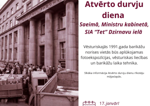 Sestdien, 17. janvārī – Atvērto durvju diena 1991. gada barikāžu norises objektos – Latvijas Republikas Saeima, Latvijas Republikas Ministru kabinets, Latvijas Radio, Latvijas Televīzija, SIA “Tet” Dzirnavu ielā.