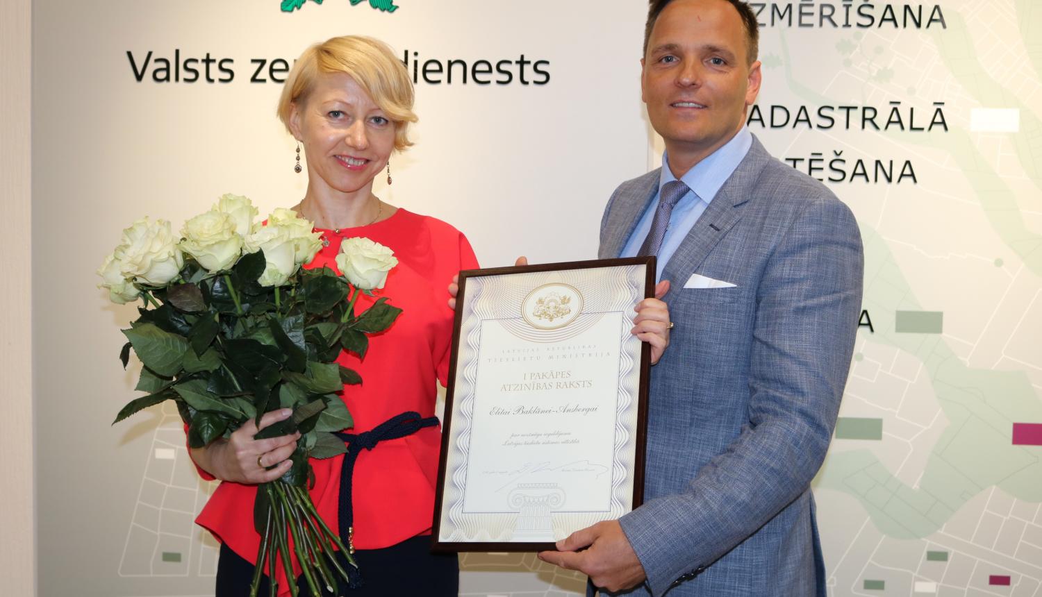 Ceturdien, 18. augustā, Tieslietu ministrijas valsts sekretārs Raivis Kronbergs pasniedza Tieslietu ministrijas I pakāpes Atzinības rakstu un Zelta spalvu bijušajai Valsts zemes dienesta vadītājai Elitai - Baklānei Ansbergai par nozīmīgu ieguldījumu Latvijas tieslietu sistēmas attīstībā.